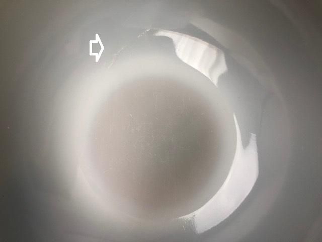 製造時不良:内面に写真8枚目矢印の練りジワがあります。