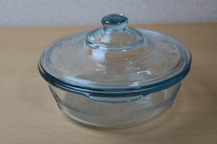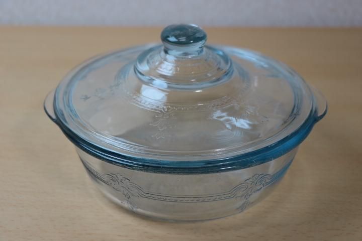コメント:ファイヤーキングの出発点であり、1940年代と50年代のアメリカのキッチンを飾ったサファイアブルーのキャセロールです。