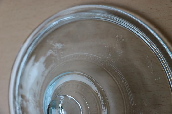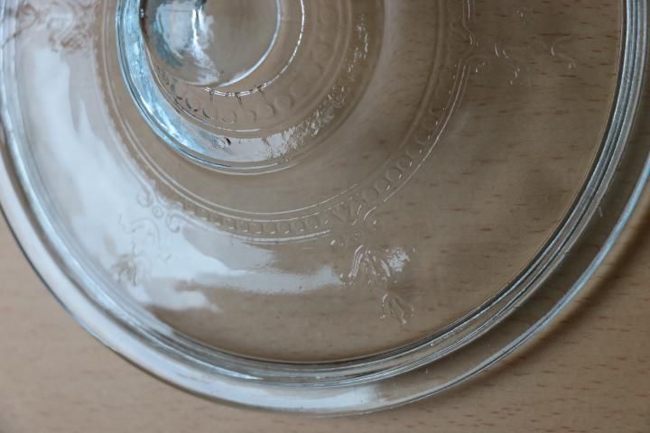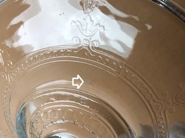 製造時不良:キャセロール(写真5枚目)及びカバー(写真10枚目)にホワイトスポットのほか、ガラスのシワがあります。