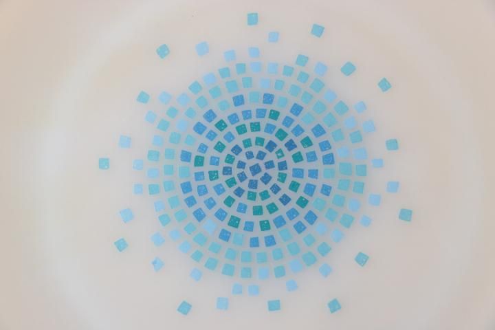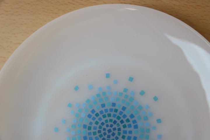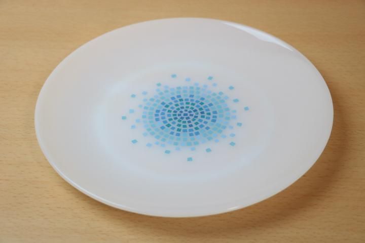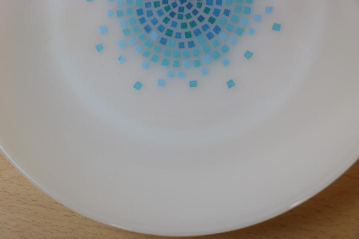 コメント:かわいいモザイク柄で人気が高いミルクガラスです。
