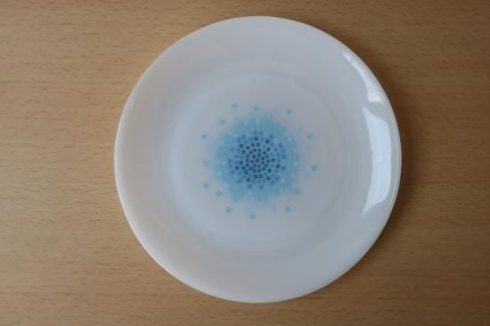 コメント:かわいいモザイク柄で人気が高いミルクガラスです。