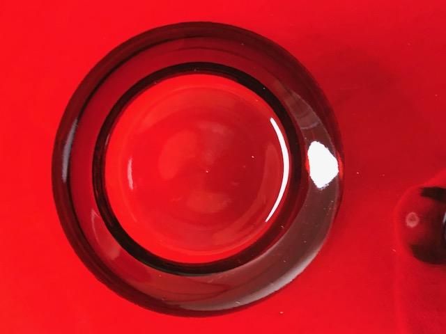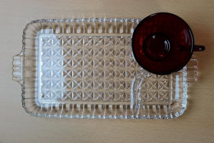 コメント:格子柄デザインのクリスタルプレートとロイヤルルビーのカップのコンビネーションが美しいサーバ(SERVA)スナックセットです。