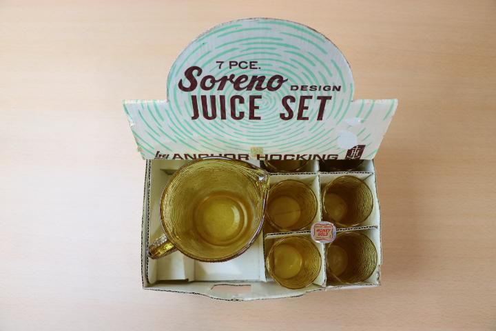 コメント:ソレノのかわいい6ozジュースグラス6個と28ozピッチャーのセットです。