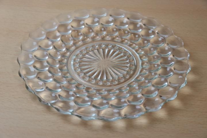 通常のディナープレートの直径は9 3/8インチ(23.9cm)ですので大きな差異ではないのですが、接地面円周内のバブル特有のデザイン部を小さくして、円周外のバブルを4重にしています。(通常、円周外のバブルは3重に配されています。)