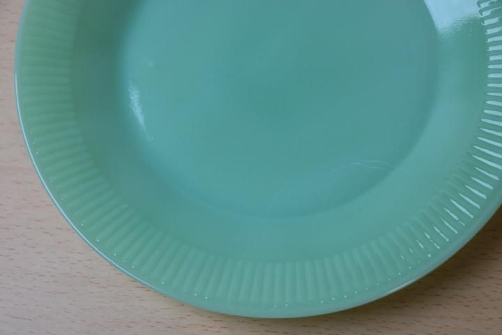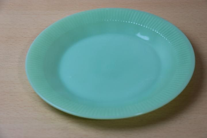コメント:1946年から20年近い生産期間を持つジェーンレイですが、こちらは初期製造を示すGLASS刻印のディナープレートです。