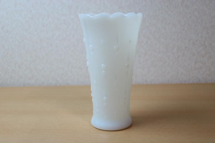 ホブネイルに比べて落ち着き感を持つこのミルクガラスは、どんな場所にも合わせられる、ジャストサイズのフラワーベースです。