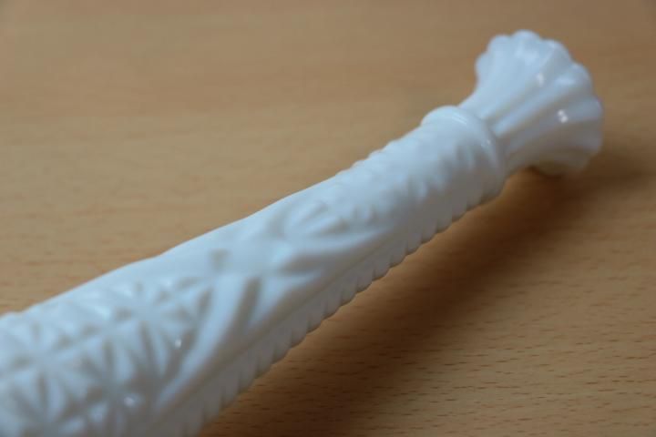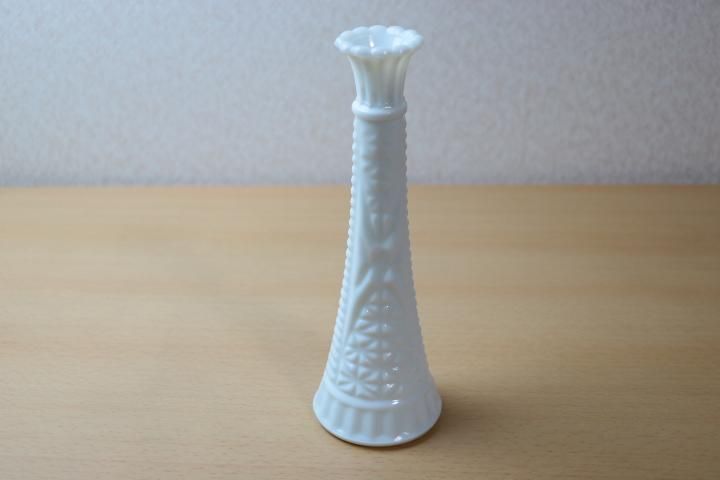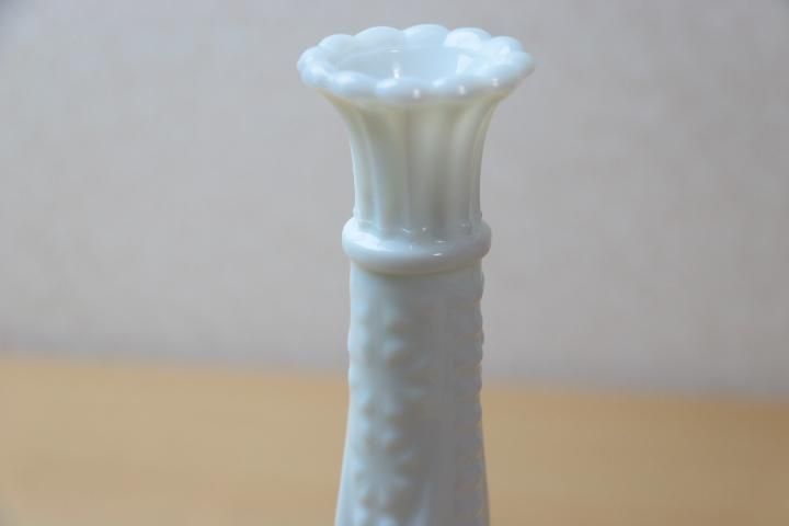 凝ったデザインと美しいミルクホワイトの一輪挿し(Bud Vase)です。