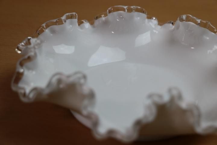 実用的なサイズもありますが、特徴的なデザインが美しいインテリア・ミルクガラスです。